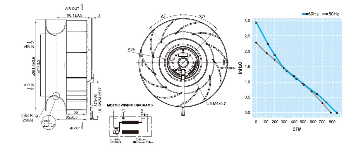 UF250APA11H1C2A離心風扇臺灣福佑伺服電機散熱風扇充電樁外轉(zhuǎn)子